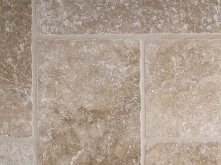 Travertinfliesen Classic Light in dunklen Beigetönen von oben